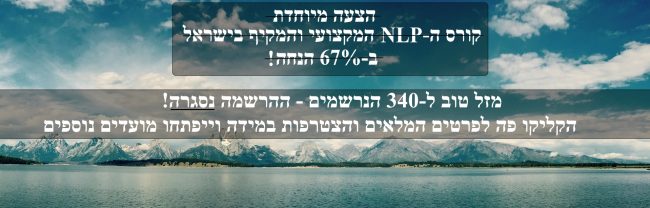 קטע קצר מתוך אחת הסדנאות של גל צחייק על הצלחות ותוצאות. בסרטון נלמד עקרון חשוב שיאפשר לנו לקחת אחריות בצורה ברורה על הדברים החשובים שלנו ויעזור לנו לפעול בעוצמה על מנת להגשים אותן. אז אם אהבת את הסרטון וברצונך לדעת עוד על העולם המרתק של N.L.P הגיע הזמן להצטרף למגזין ה-N.L.P הדיגיטלי שלנו, ממש מפה…